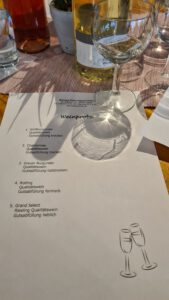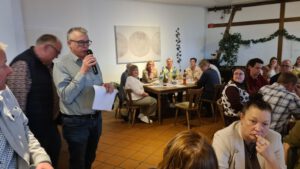 Im Mittelpunkt der Weinprobe standen fünf ausgewählte Weine, die von unserer Festwirtin Lina Minnebusch sorgfältig zusammengestellt und von Thomas Kersting präsentiert wurden.